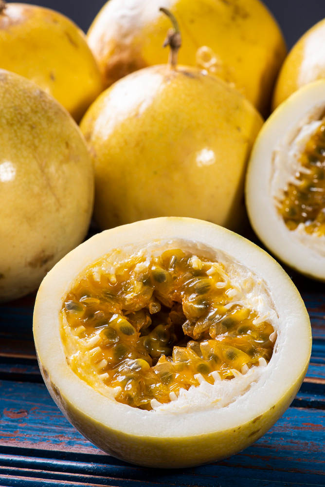 O maracujá (Passiflora edulis) é a fruta que traduz intensidade. De sabor marcante e aroma único, é perfeito tanto para sucos refrescantes quanto para doces, sobremesas e até molhos especiais na gastronomia. Sua acidez equilibrada desperta o paladar e oferece experiências únicas de sabor.